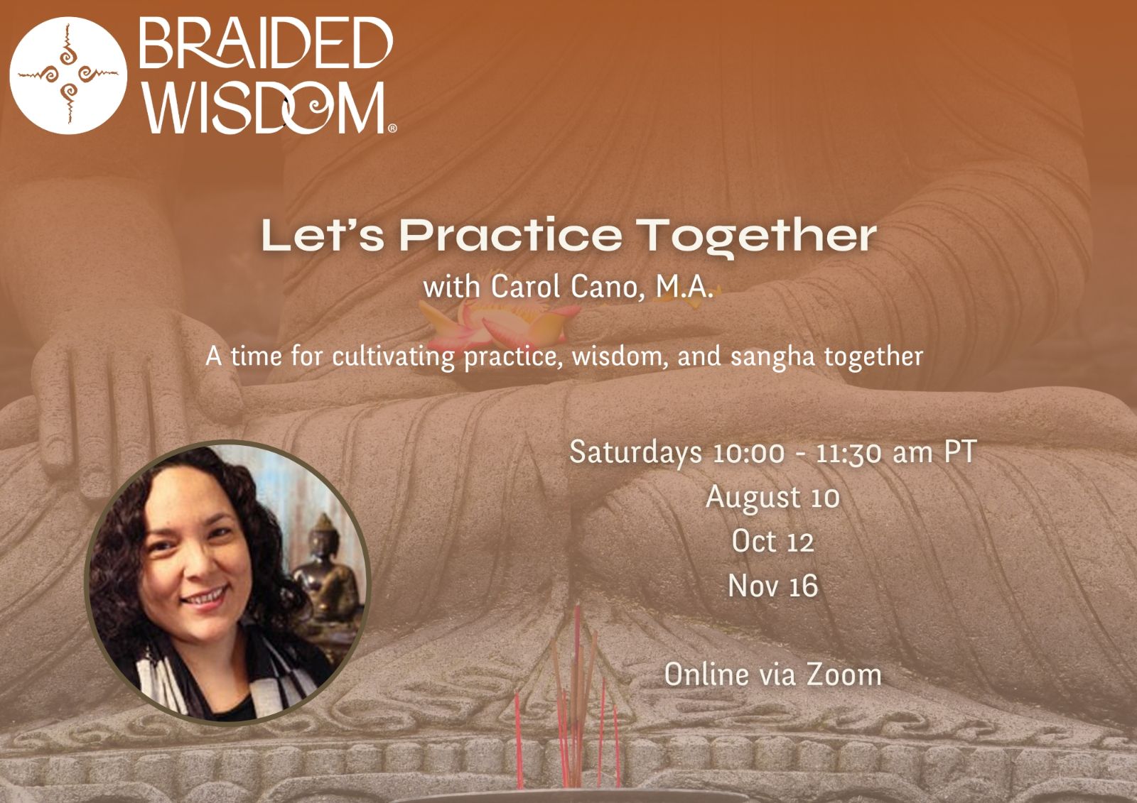 This program registration is for the Let's Practice Together with Carol Cano, Saturday, August 10 from 10:00 - 11:30 am (Pacific Time).