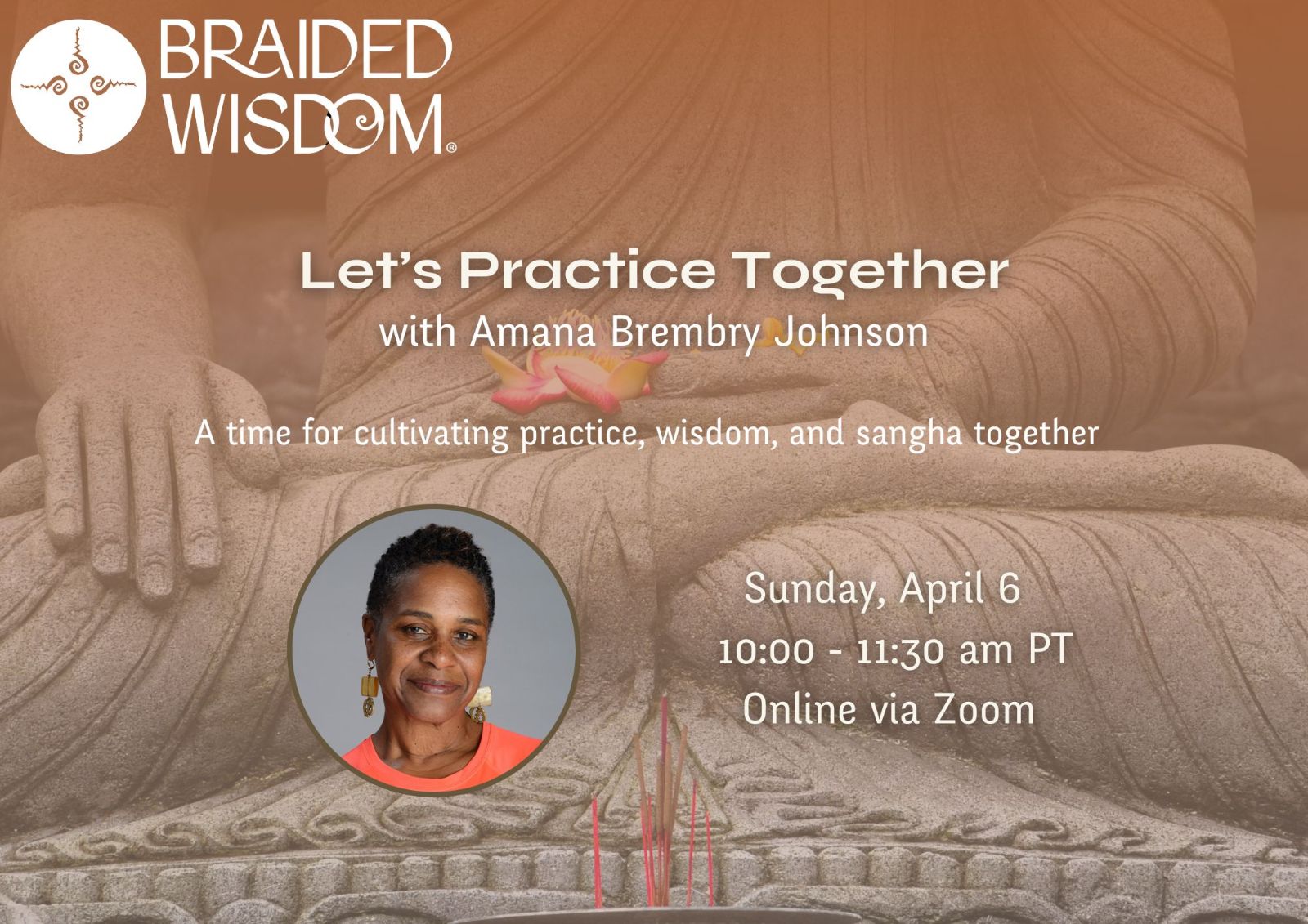 This program registration is for the Let's Practice Together with Amana Brembry Johnson, Sunday, April 6 from 10:00 - 11:30 am (Pacific Time).