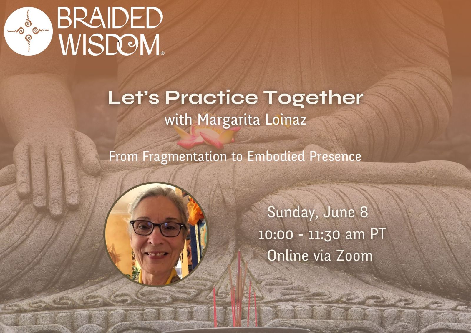 This program registration is for the Let's Practice Together: From Fragmentation to Embodied Presence with Margarita Loinaz, Sunday, June 8 from 10:00 - 11:30 am (Pacific Time).