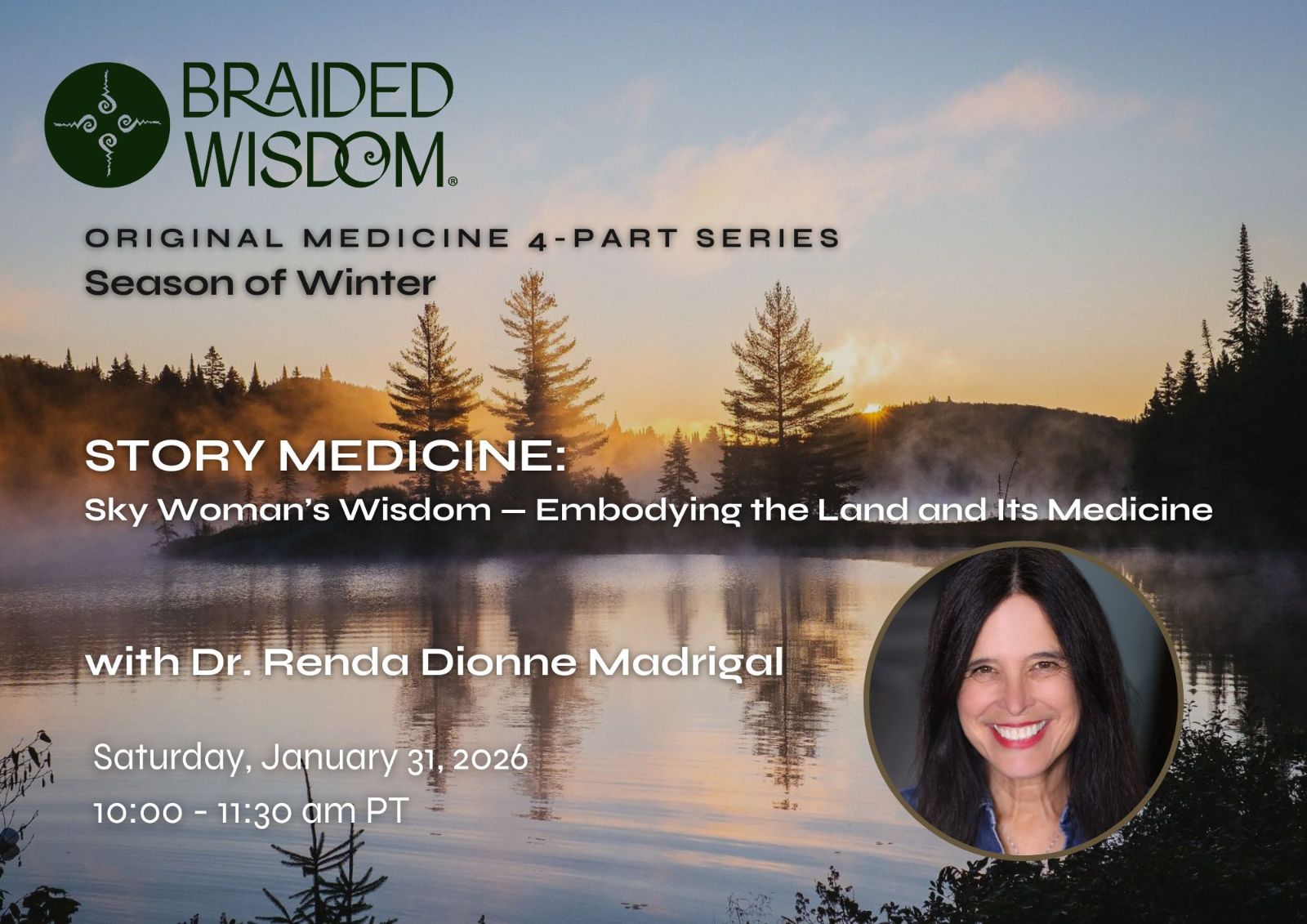 This program registration is for Original Medicine 4-Part Series: Story Medicine: Sky Woman's Wisdom — Embodying the Land and Its Medicine with Dr. Renda Dionne Madrigal on Saturday, January 31, 2026, 10:00 - 11:30 am PST.
