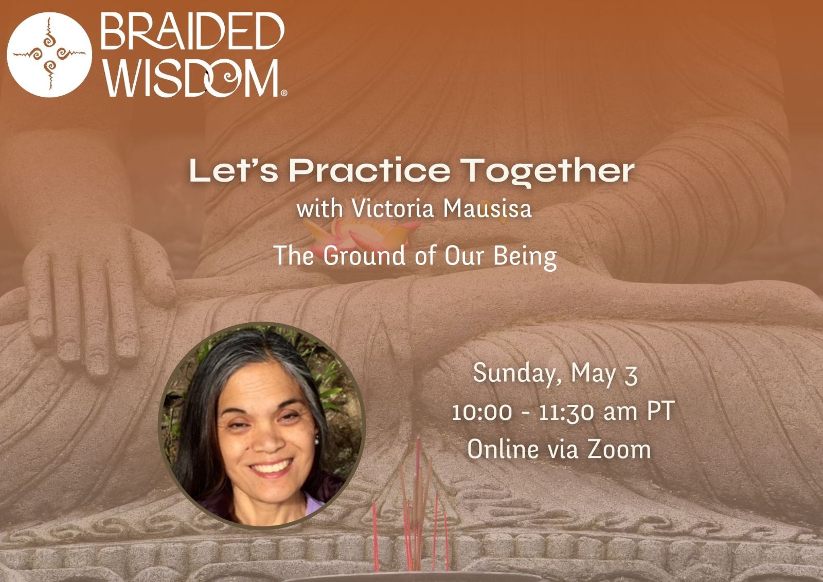 This program registration is for the Let's Practice Together: The Ground of Our Being with Victoria Mausisa, Sunday, May 3, 2026 from 10:00 - 11:30 am (Pacific Time).